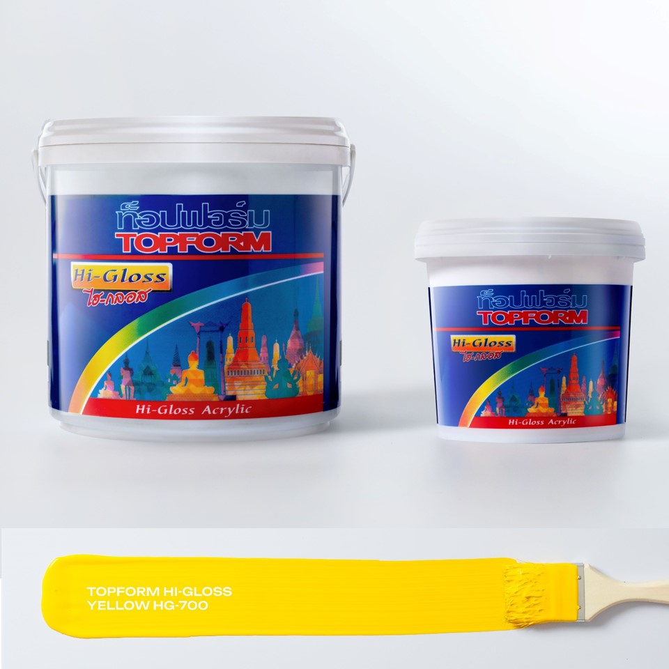 TOPFORM สีอะคริลิก สูตรน้ำ ไฮกลอส ชนิดเงา HG-700 >> สีเหลือง <<
